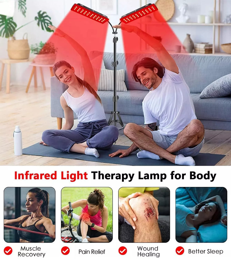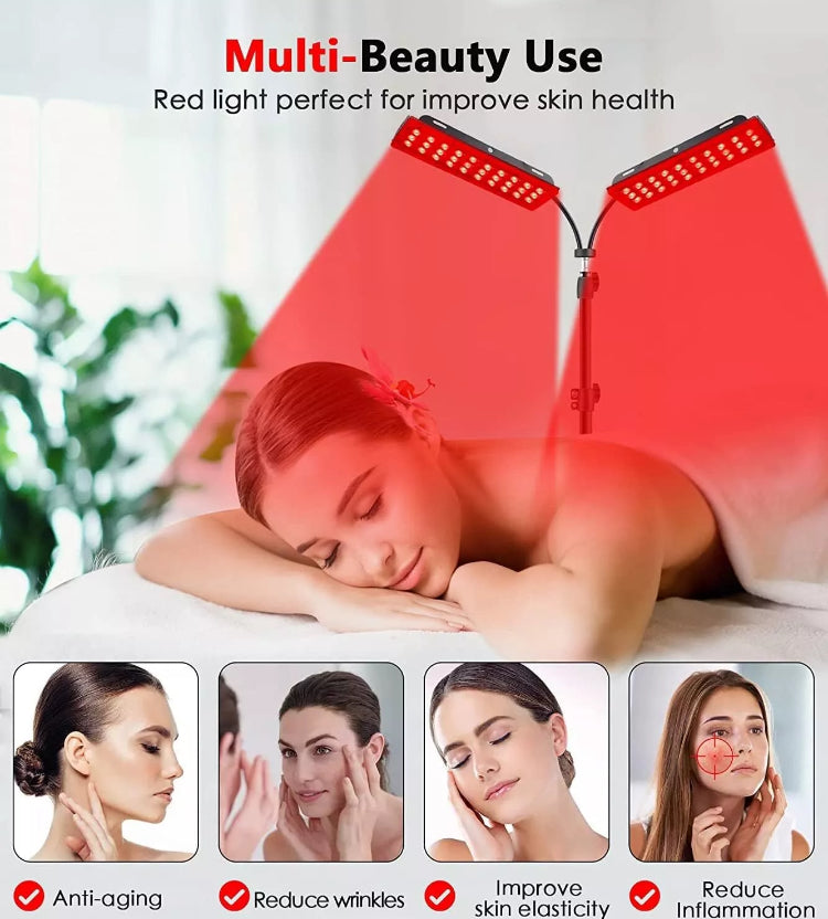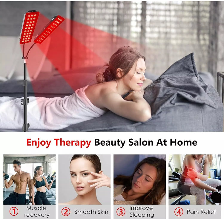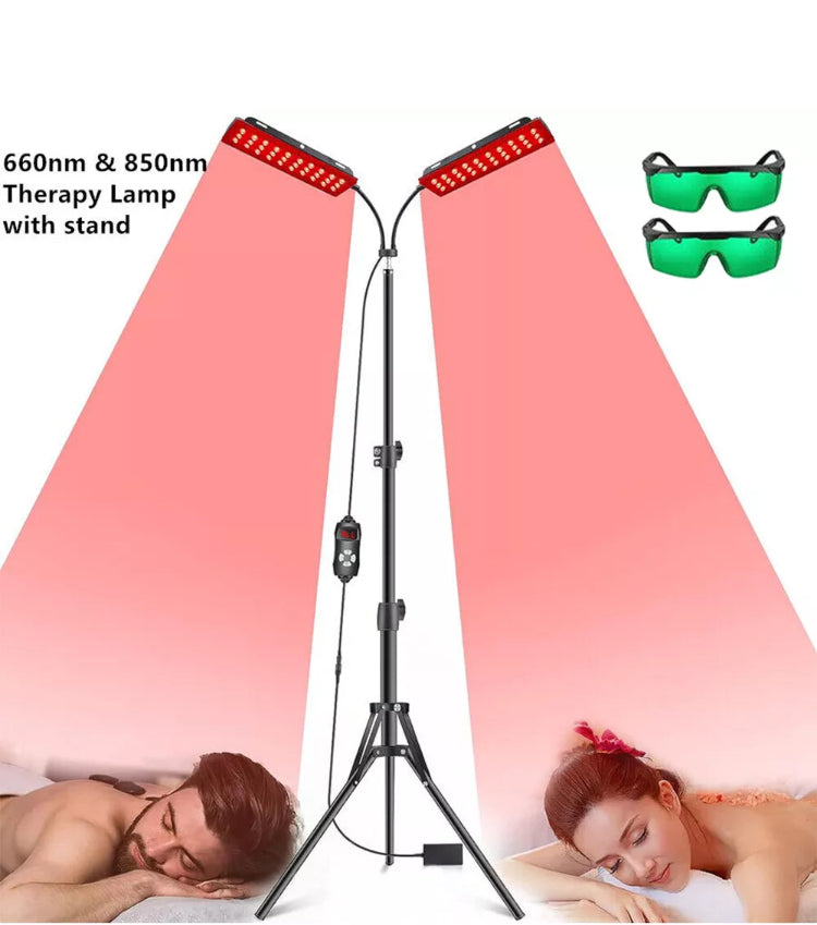 Dual-Lamp: With dual-panel design, the red light therapy lamp allows 2 people to easily enjoy light therapy at the same time! Its total 180LED contains 120pcs 660nm-wave chips and 60pcs 850nm-wave chips. Adjustable Floor-Standing allows you to have a red light therapy in more occasions at home without any space limit. (WARM REMINDER: please wear the included glasses when using for face)