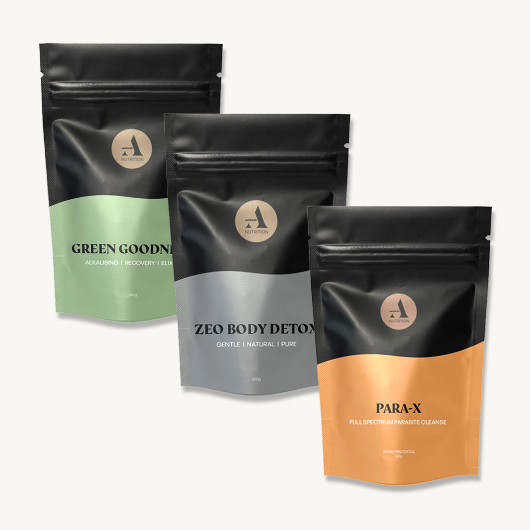 Introducing THE ESSENTIALS - Heavy Metal & PARA-X Parasite Detox & Alkalise Protocol Bundle – your comprehensive, simple, and effective 3-step system to cleanse your body from the inside out.
